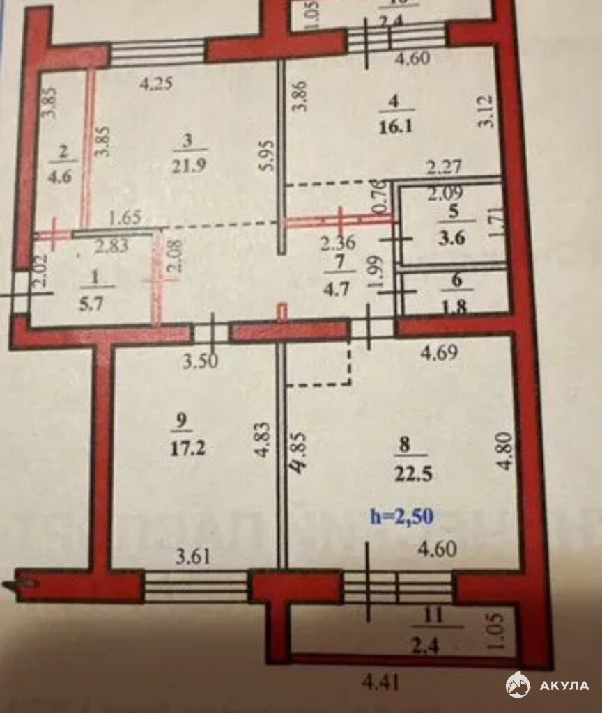 - 61.6 м²